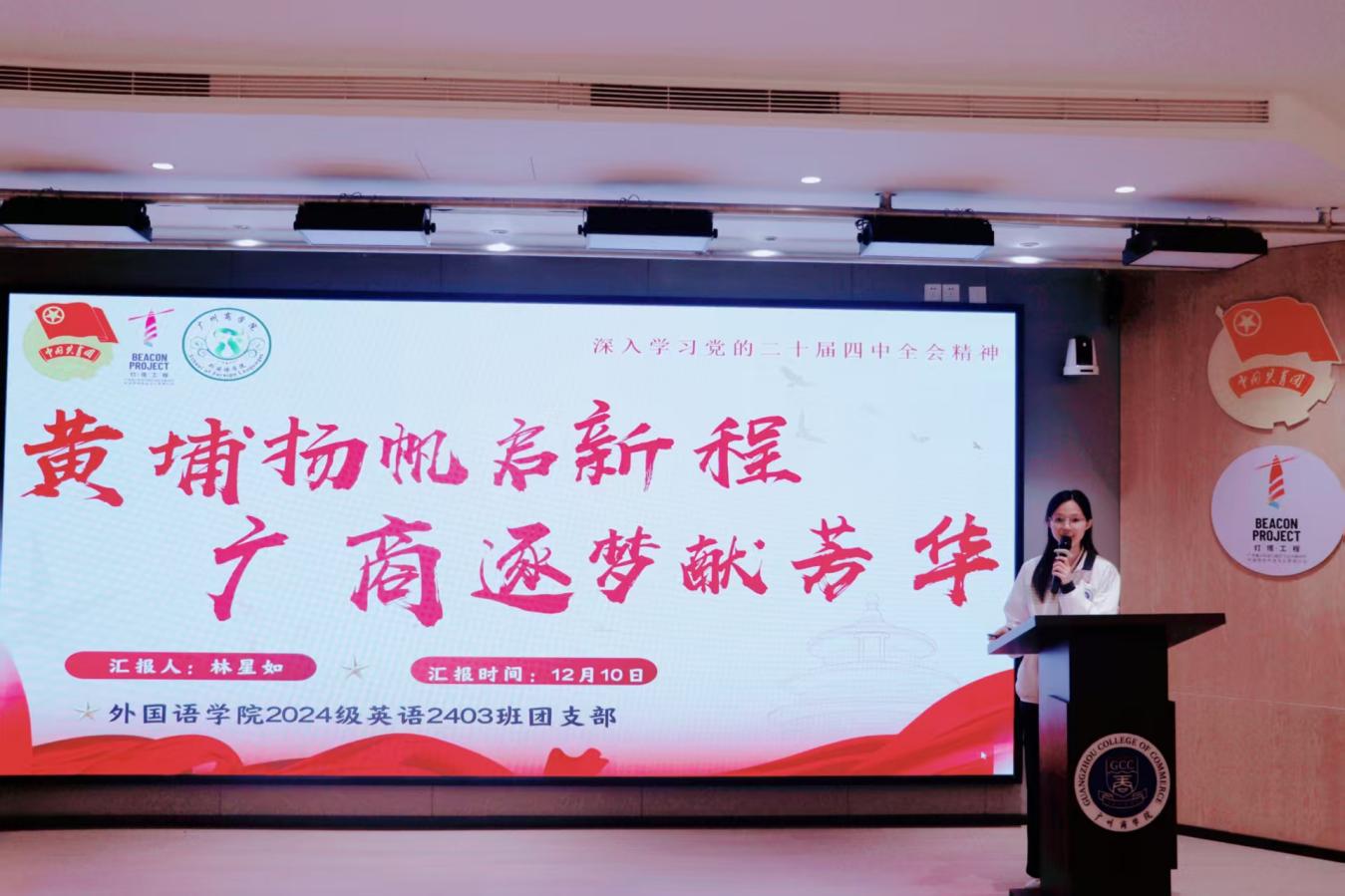 24级德语专业1班胡长正作为优秀团支书代表为大家分享他的团日生活组织心得与团支部建设经验。他讲述了团支部如何通过思想引领、志愿服务和活动设计创新等方面有效传播党的二十届四中全会精神,推动团日活动多元化、趣味化,实现理论学习与实践体验的有机结合。在团支部建设方面,他提倡要增强支部的政治性、先进性和群众性,祛除机关化等不良倾向,构建凝聚青年、服务大局的工作格局,严格执行团内制度。他还鼓励大家通过实践活动和理论学习共同成长,为实现中国梦注入青春力量,展现新时代青年员工的责任与担当。