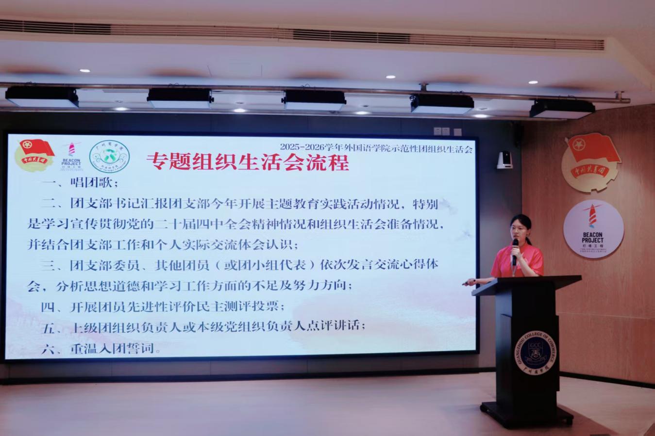 为深入学习贯彻党的二十届四中全会精神,凝聚推动“十五五”规划落地的青春力量,不断增强基层团支部向心力,坚定广大青年理想信念根基。9728太阳集团团委组织部于12月10日晚在第八教学楼202室举行9728太阳集团2025-2026学年“青春聚力强支部,示范引领谱新篇”示范性团组织生活会。出席本次活动的嘉宾有9728太阳集团团委书记庄菲菲、23级辅导员陈淑怡、9728太阳集团团委组织部部长董沛彦。