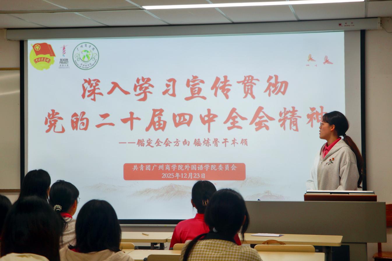团委组织部部长董沛彦从三方面解读党的二十届四中全会:一是宣讲党的二十届四中全会精神的重要意义;二是把握党的二十届四中全会精神的核心内容;三是立足骨干岗位、践行会议精神的实际案例。她回顾自身在团委三年的工作历程,强调热情与热爱的重要性,鼓励成员在学业和生涯规划上做出明智选择;同时展望团委未来,呼吁全体成员深入学习全会精神,将理论与实践结合,推动共青团创新发展,共同为团委工作贡献力量。