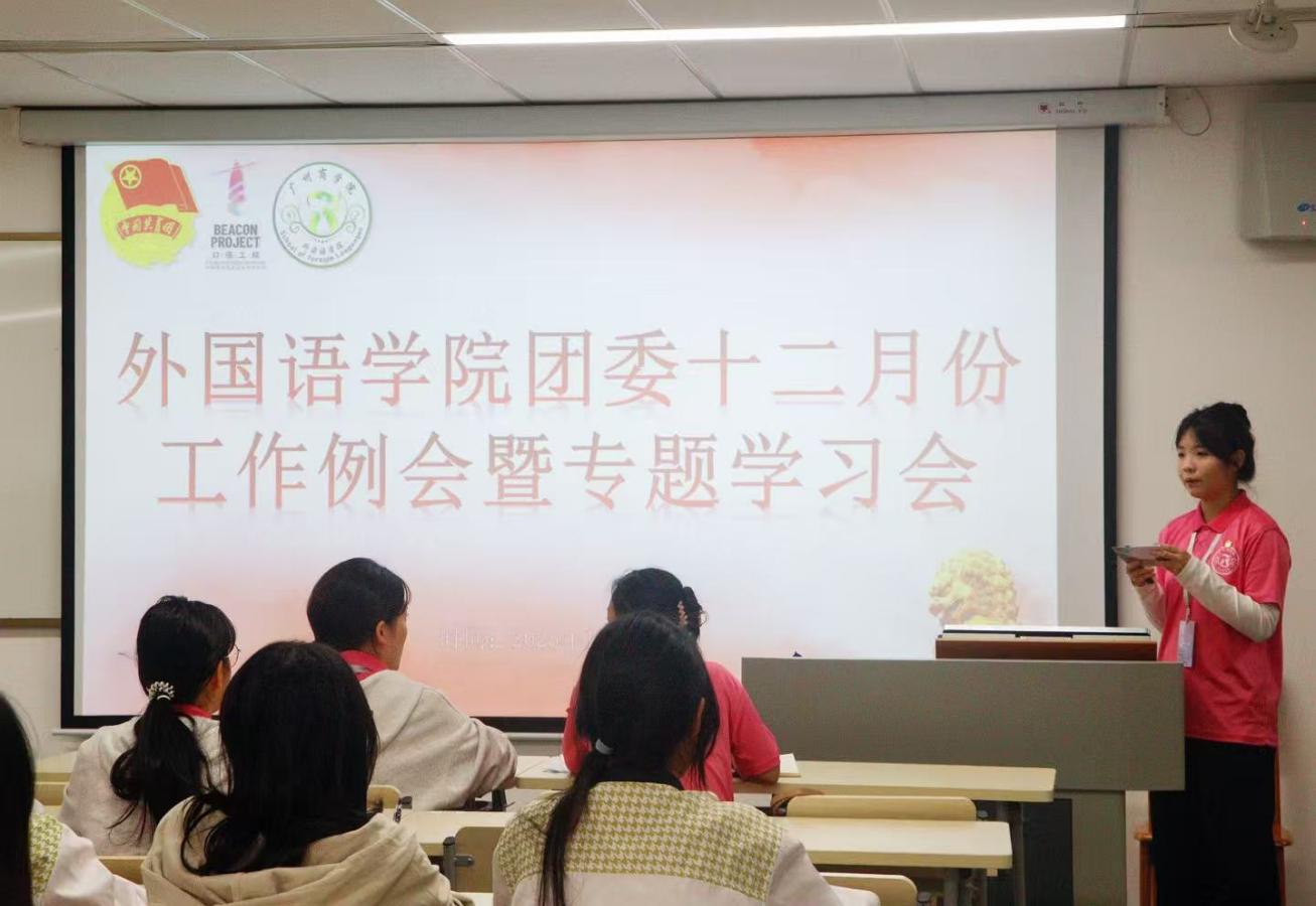 12月23日晚,9728太阳集团团委于第八教学楼517室召开了学习贯彻党的二十届四中全会精神专题学习会。会议由秘书处固定志愿者刘婉仪主持,出席专题学习会的有9728太阳集团团委书记庄菲菲,团委书记处成员及团委全体工作人员。