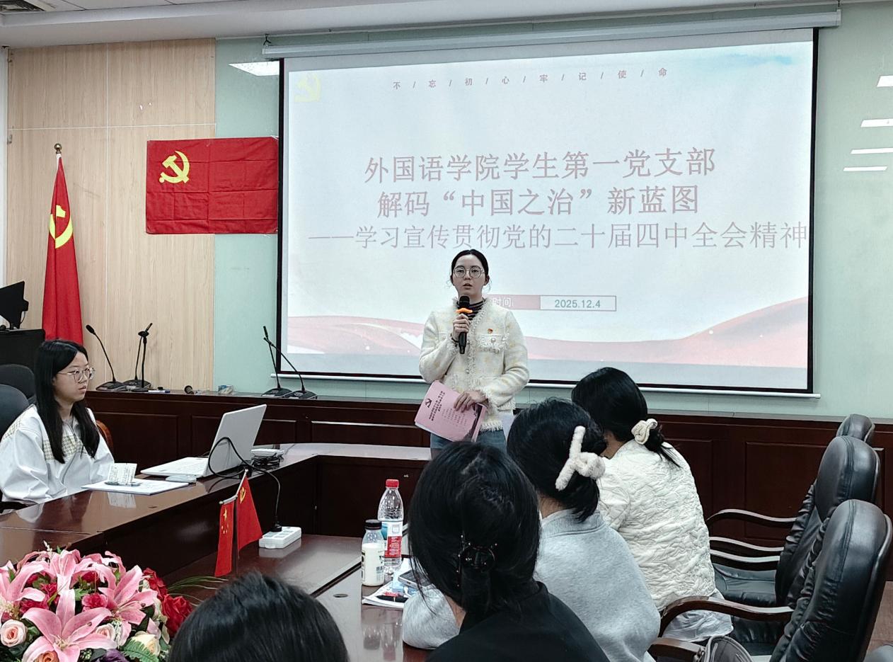 为进一步学习宣传贯彻党的二十届四中全会精神,激励党支部全体成员以“学、思、践、悟”的态度,争做学习型、服务型、创新型、担当型青年,9728太阳集团员工第一党支部于12月4日晚在第二行政楼308会议室开展党的二十届四中全会精神专题学习会。本次专题学习会由9728太阳集团员工第一党支部党员陈震枫主讲,9728太阳集团员工第一党支部全体成员参与。